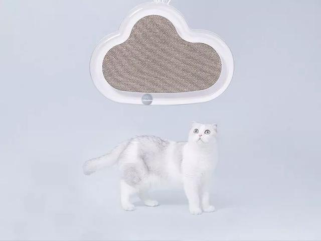 虽然只是猫抓板+玩具球轨道的常规设置,但是偏偏这个云朵的形状是那么轻盈。一想到猫咪躺在上面,能休息能玩耍还能肆意破坏,大概就有种上天的快乐吧。