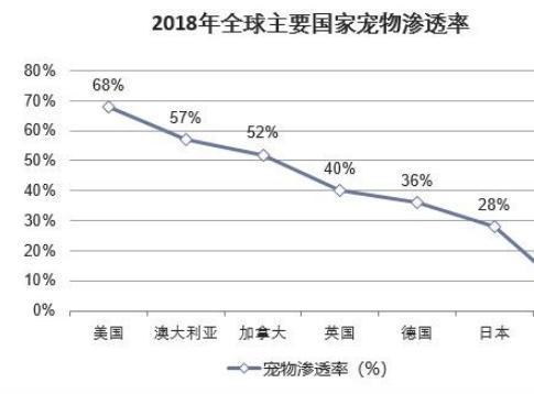 从宠物数量来看,我国宠物还有较大的增长空间。《2019年中国宠物行业白皮书》显示,2019年我国城镇宠物数量达到了9915万只,如按一个家庭一只宠物来算(有些家庭养了多只宠物,所以实际渗透率比计算结果还低),2019年我国宠物在家庭中的渗透率仅为21.32%,远低于欧美发达国家宠物渗透率。公开资料显示:发达国家宠物渗透率普遍在40%以上,其中美国宠物渗透率为68%、加拿大为52%、澳大利亚为57%。如以发达国家40%的渗透率为基线的话,我国宠物渗透率的还有19.68%以上的增长空间。