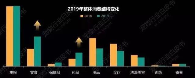 宠物细分品类的消费支出结构也在发生着变化: