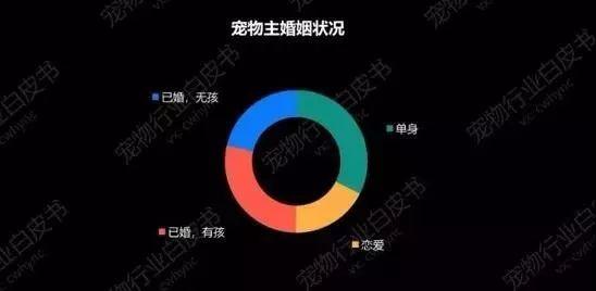 婚姻状况上,“单身一族”和“有孩一族”更偏爱养宠,宠物主中的单身人士占比达到了32.5%,其次已婚有孩的家庭占比28.5%。