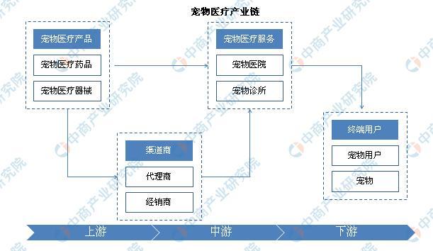 历经三十余年的发展,宠物医疗机构已形成较完整的产业链,其上游是宠物医疗产品供应商及生产商,为宠物医疗机构提供检查设备及生物制药等。负责链接上游及中游的是宠物医疗产品渠道商,其从上游厂家取得代理或经销权限后将产品结合销售至中游的宠物医疗机构。行业下游分为两部分,付费对象与诊疗对象并非同一群体,诊疗对象是服务直接受益群体,即宠物;而付费对象则为养宠用户,承担诊疗对象的所有治疗费用。
