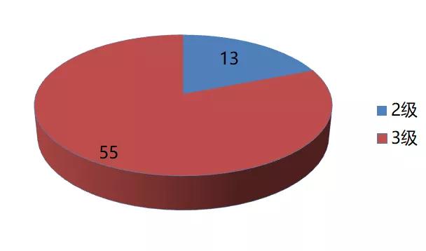同时对这68只狗做肌肉状况评分,其中肌肉状况评分三级(正常肌肉量)的55只,占总比例的81%,二级(中度肌肉萎缩)的13只,占总比例的19%。