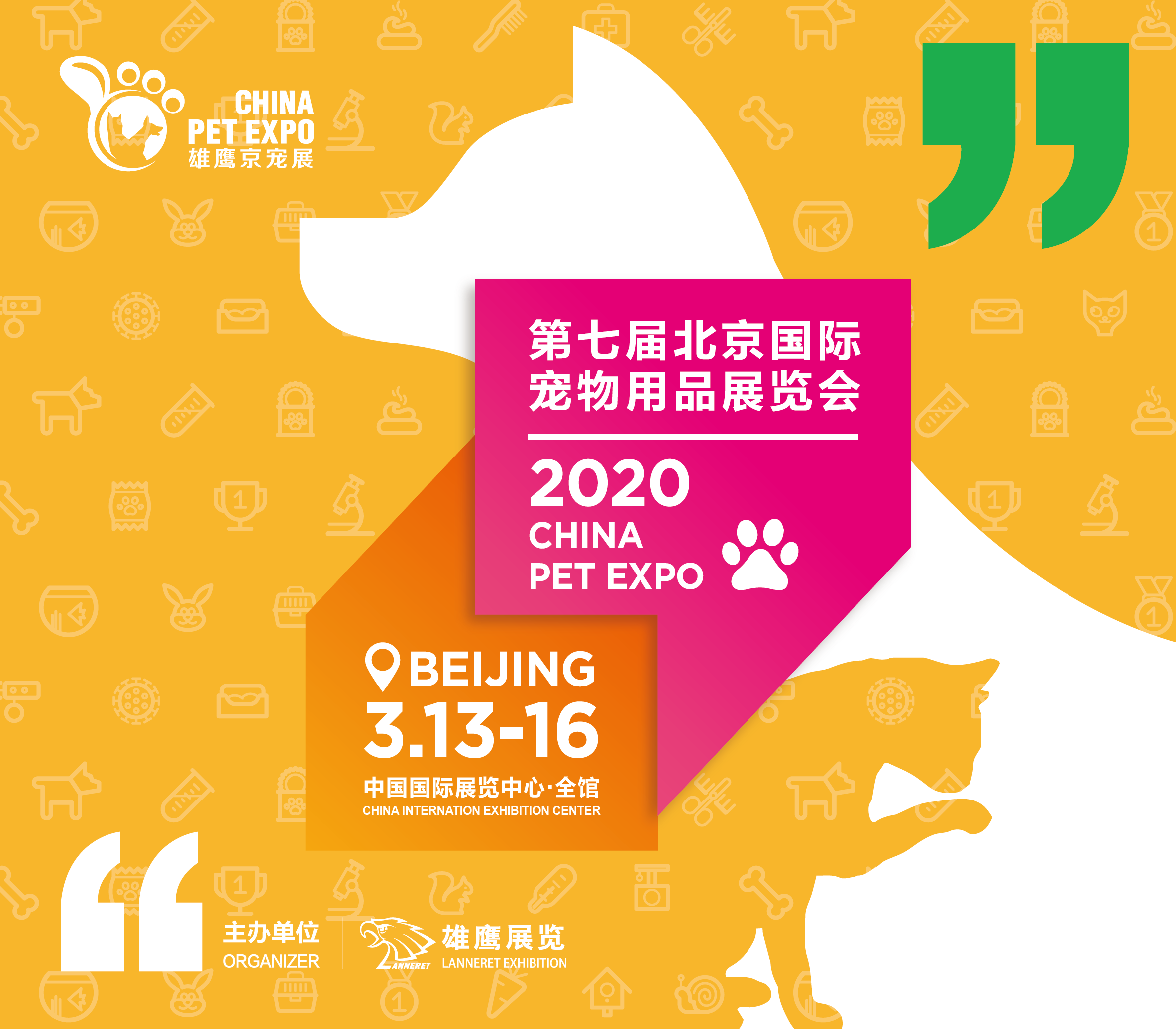 2020年3月13日-16日第七届北京国际宠物用品展(简称:京宠展)于中国国际展览中心(老馆)举行!京宠展为宠物行业企业家们全面开拓精准市场搭建更广阔的平台,作为目前国内宠物行业具有影响力,且参展范围丰富的专业展会,每届京宠展每场展会都吸引了行业内的多个知名品牌参展和专业观众的广泛参与。