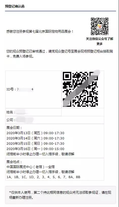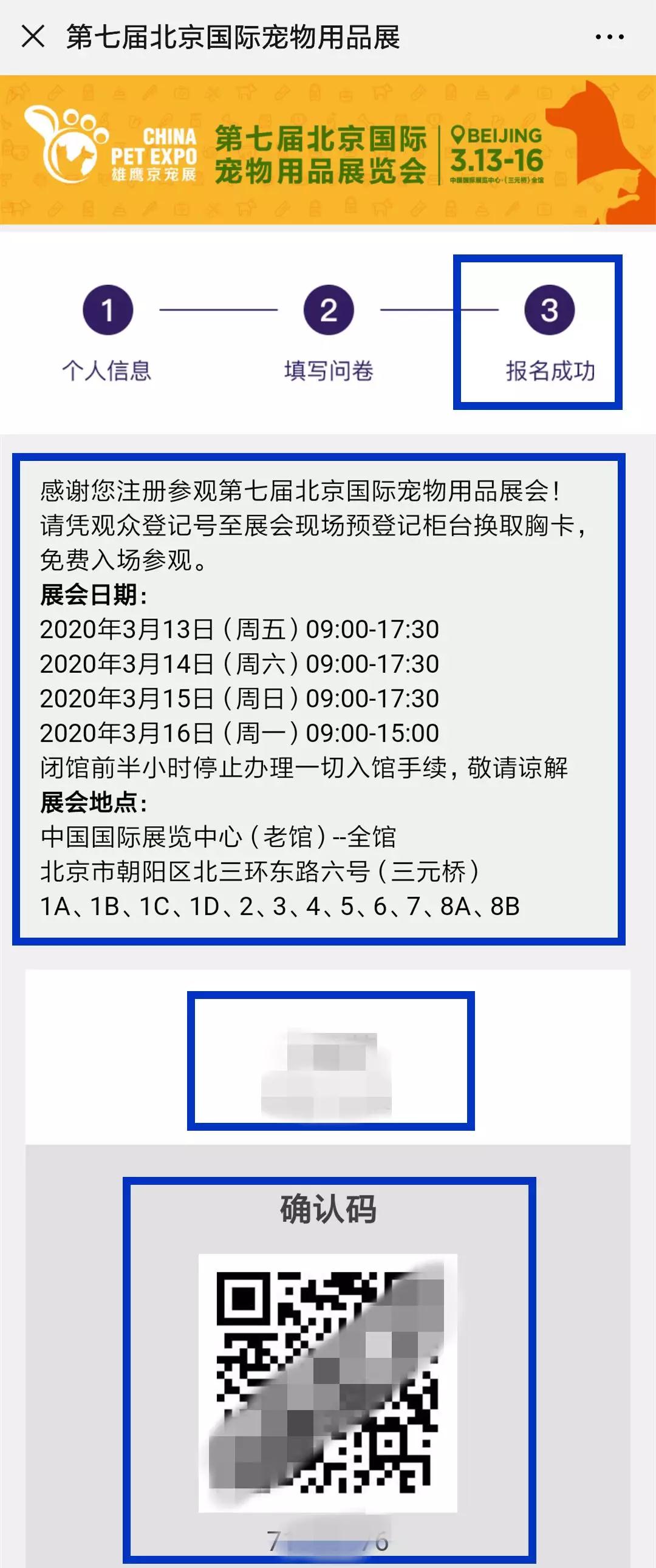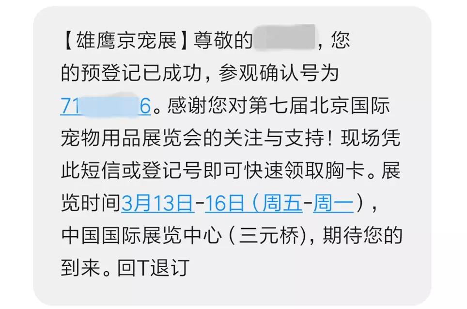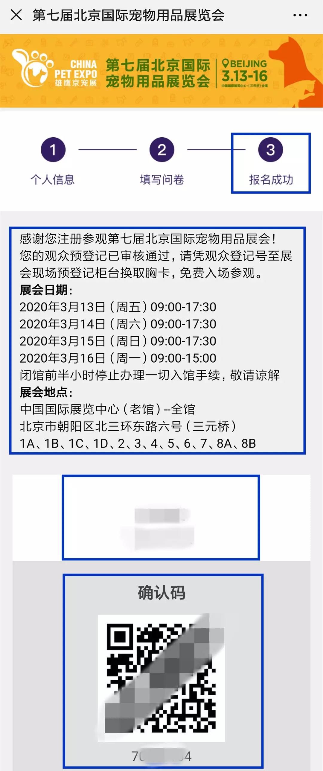 截图收藏或再次进入“雄鹰京宠展”公众号点击【参观登记】查看登记详情