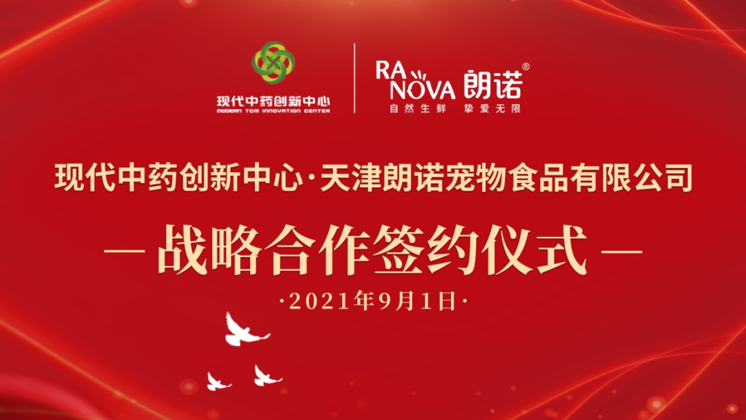 2021年9月1日,国家现代中药创新中心与天津朗诺宠物食品有限公司战略合作签约仪式在天津举行,双方将在宠物药品、保健品、处方粮等领域开展广泛深入的合作。
