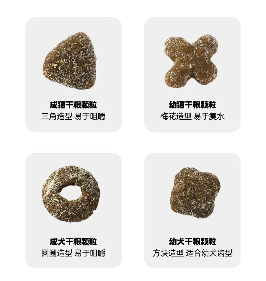 尤其为幼猫幼犬特别设计了更容易复水和适合幼齿的形状