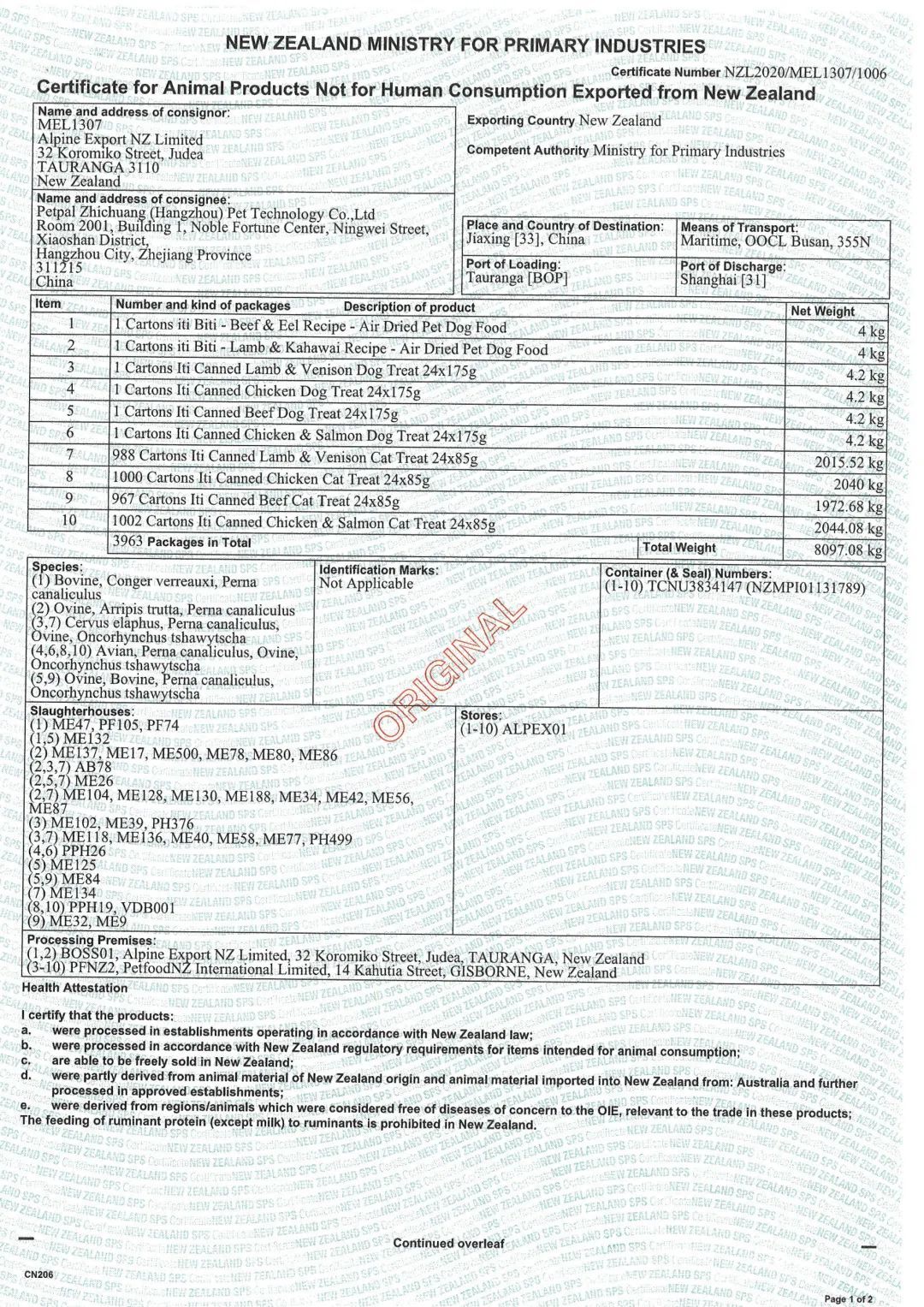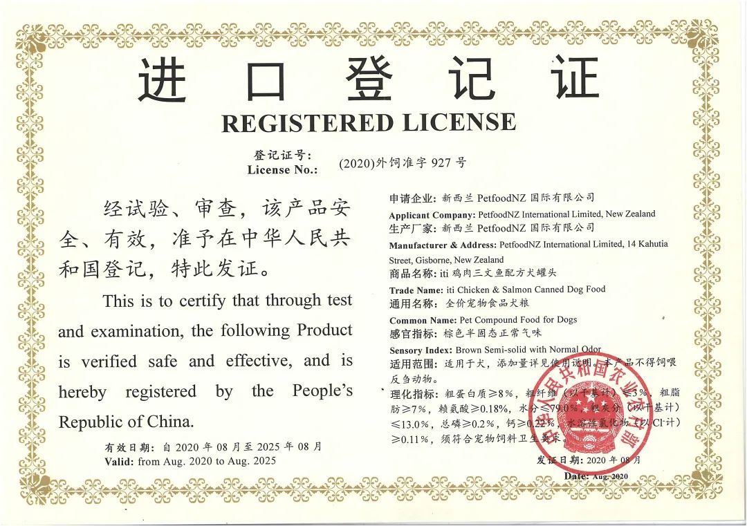 iti Pet各系列产品的制造商为iti Biti Petfood Company的关系企业Alpine Export NZ Limited,系符合新西兰初级产业部RMP体系认证的登记企业;