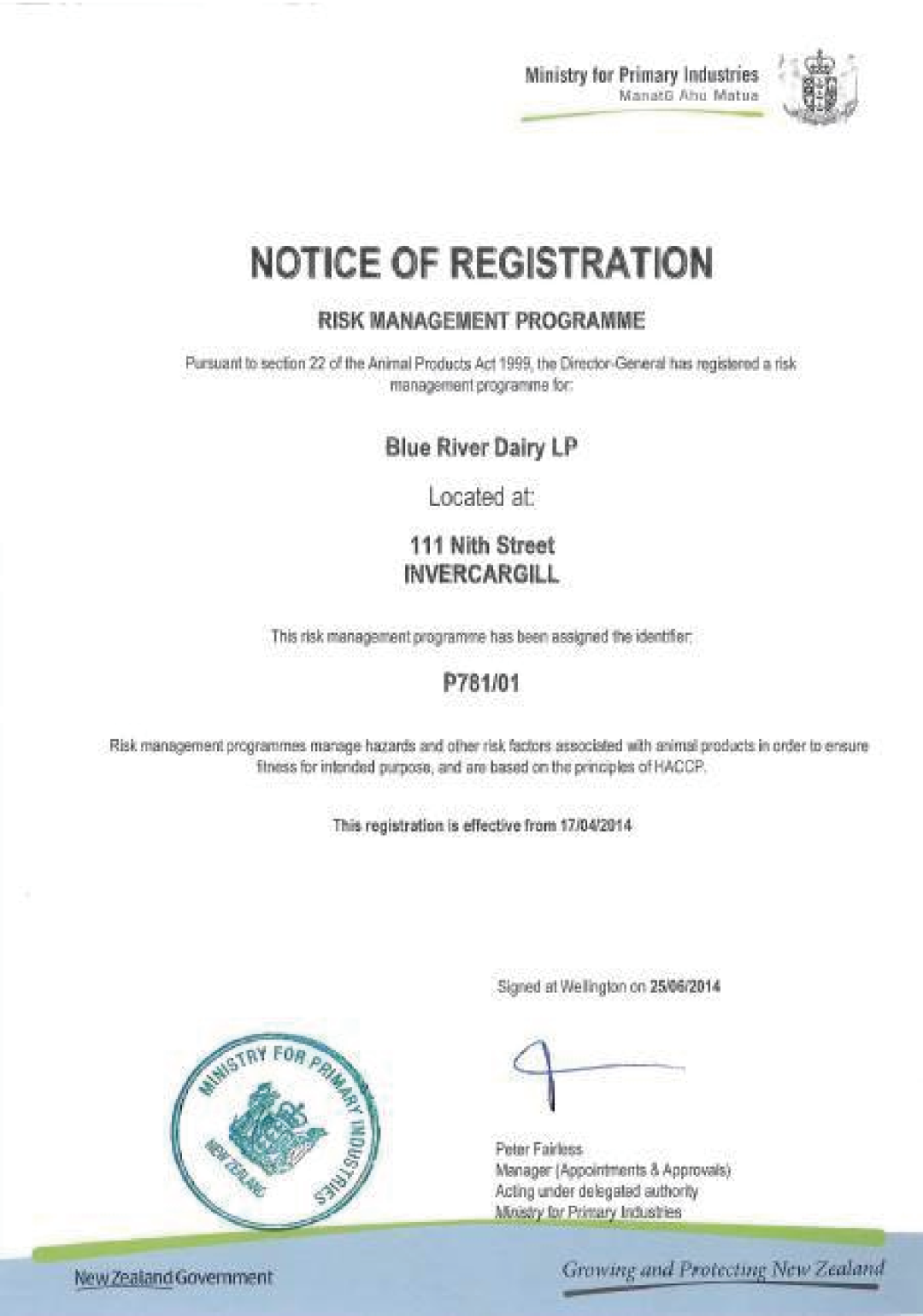 ▲新西兰Risk Management Program认证证书