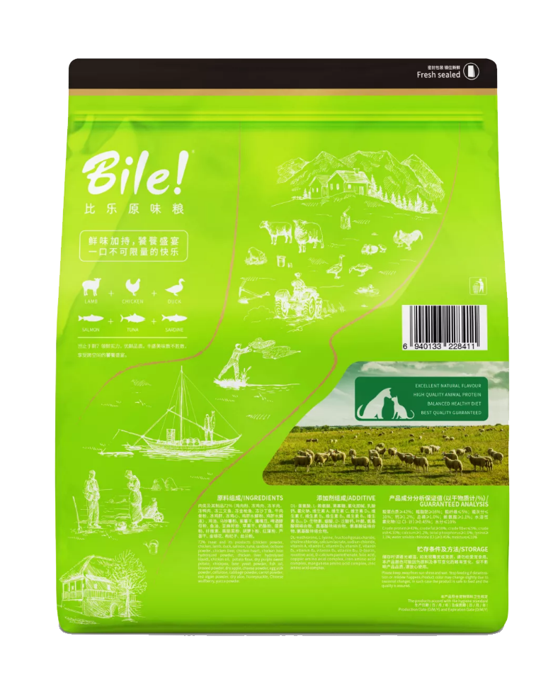1、海陆空6种肉类配比,模拟犬猫高肉含量且多元化的大自然饮食。