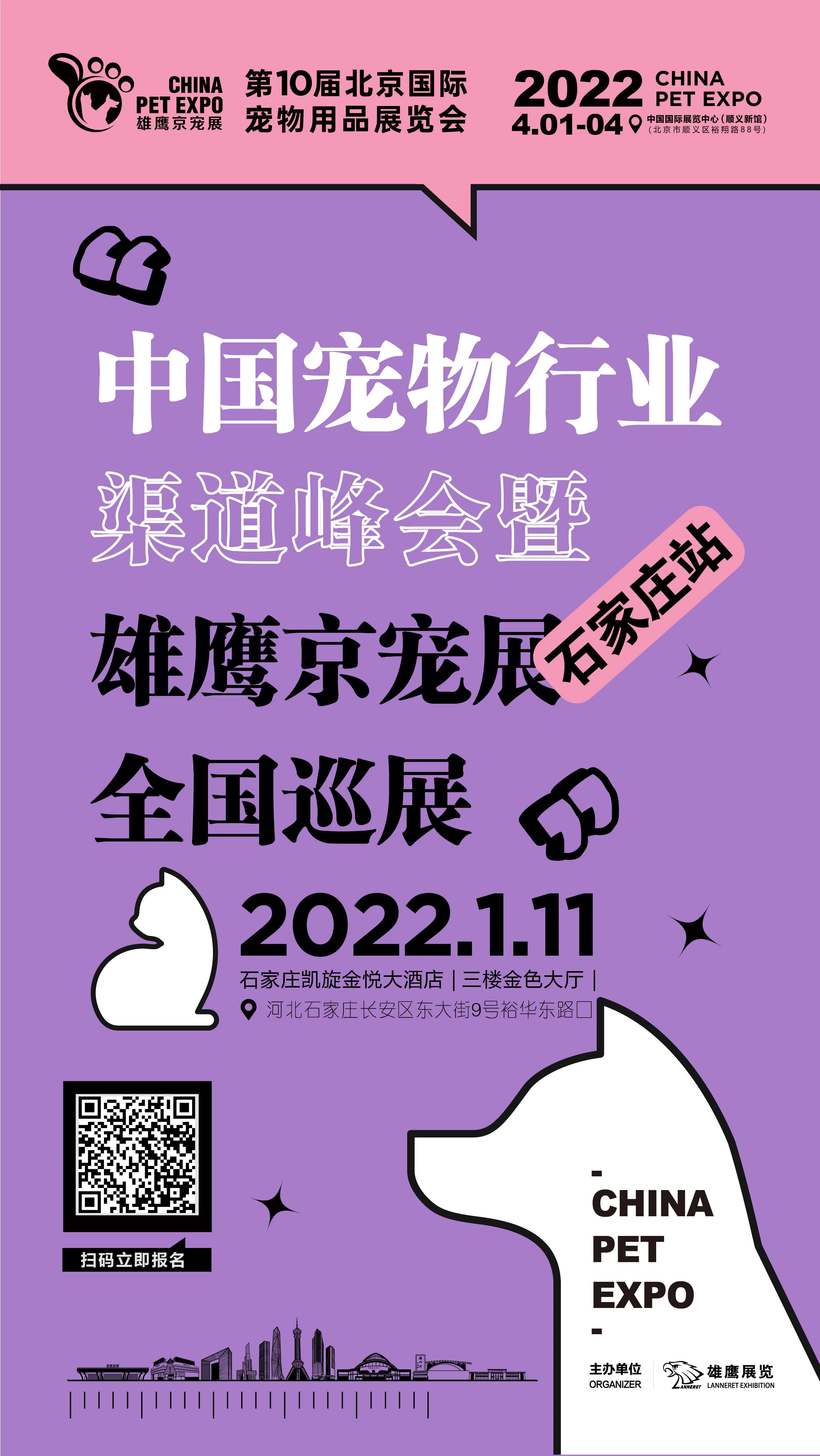 2022“中国宠物行业渠道峰会暨雄鹰京宠展全国巡展-石家庄站”将于2022年1月11日在石家庄凯旋金悦大酒店举办。