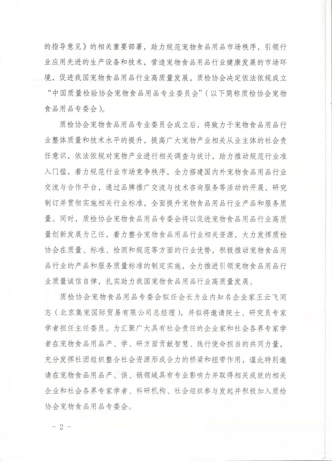 质检协会宠物食品用品专业委员会筹备工作组