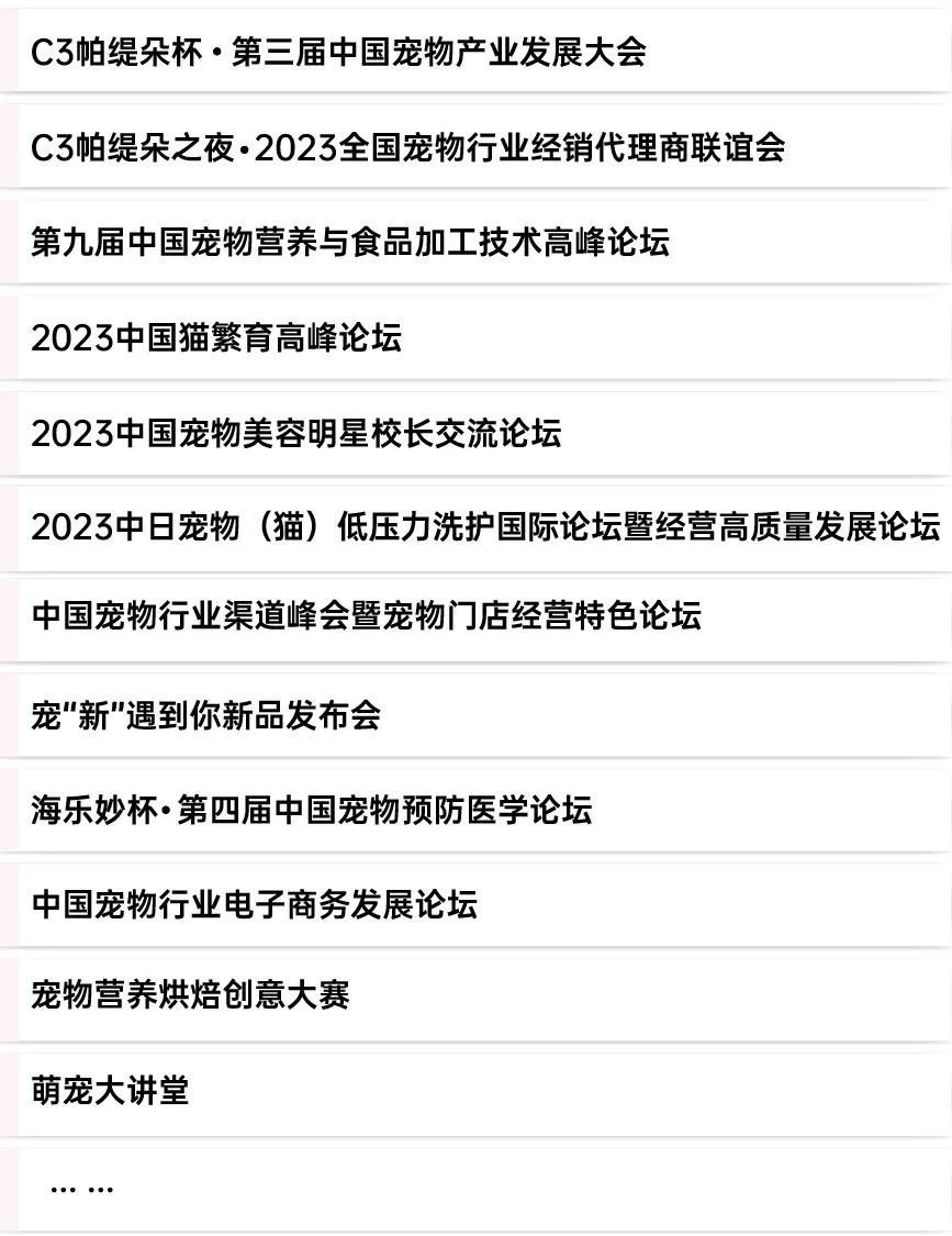 此次展会还将针对经销商、电商、门店零售端、自媒体流量主、繁育等不同人群,开展以“经营”“实操”“医疗”“繁育”“食品安全”等热点话题开展,只为让品牌和客户、用户更为贴近,缩短沟通距离。