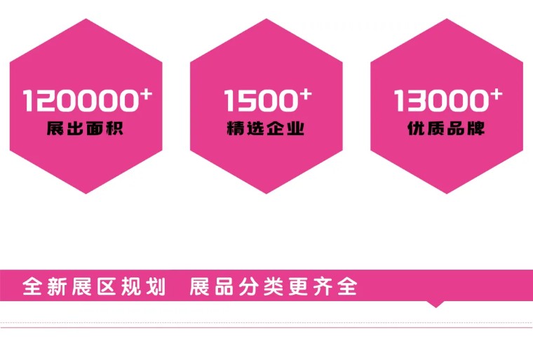 本届展会展览面积预超120000平方米,八大展馆齐开,细分品类,分区展览,预计有1500+企业参展、品牌随之增至13000+个,将吸引线上与线下,专业采购与大众消费群体观众超300000人次。