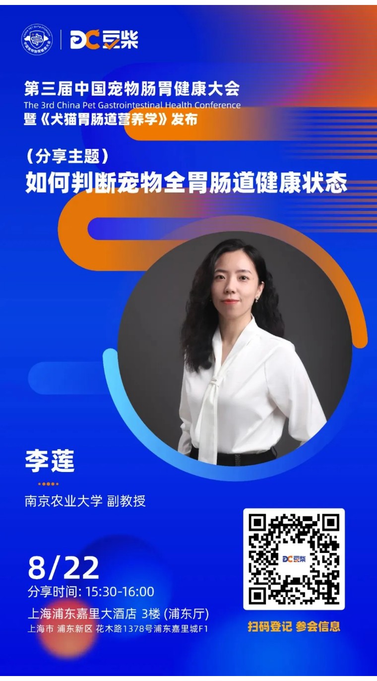 南京农业大学李莲副教授,将从全肠道营养的角度,为我们深入剖析犬猫常见的肠道病症表现,以及其对健康的潜在危害,并针对常见肠胃病症提出具体的治疗方案。同时呼吁大家关注宠物消化系统健康,及时发现猫狗的潜在肠胃问题。—如何判断宠物,全胃肠道健康状态。
