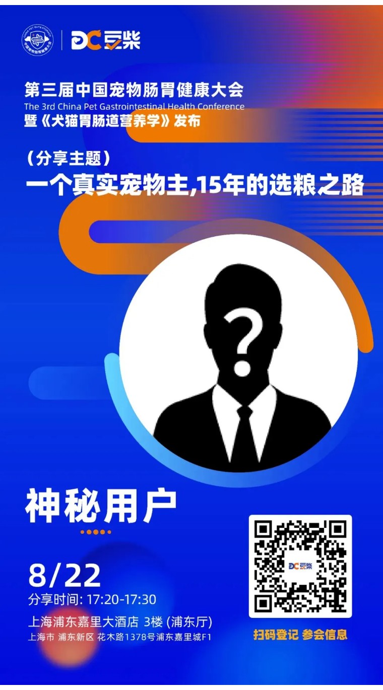时隔一年,我们第三届中国宠物肠胃健康暨《犬猫胃肠道营养学》发布大会,将于8月22日在上海浦东与大家再相见。本届大会将聚焦宠物肠胃健康这一核心话题,与行业学者、宠物门店、消费者等共同探讨行业前沿理念与技术,为宠物肠胃健康精准发力。