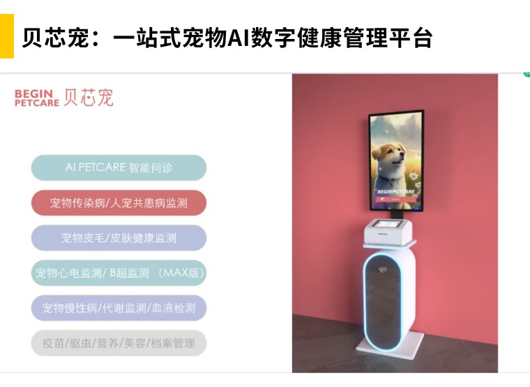 贝芯宠目前主要有以下三大盈利模式:设备及服务销售,通过线下门店及渠道布点实现设备销售和租赁租金;通过健康检测服务、检测芯片宠物保健品、健康用品售卖等实现宠物健康及医药售卖进行盈利;面向B端C端收取Al-PetCare 软件服务收费,进行盈利。