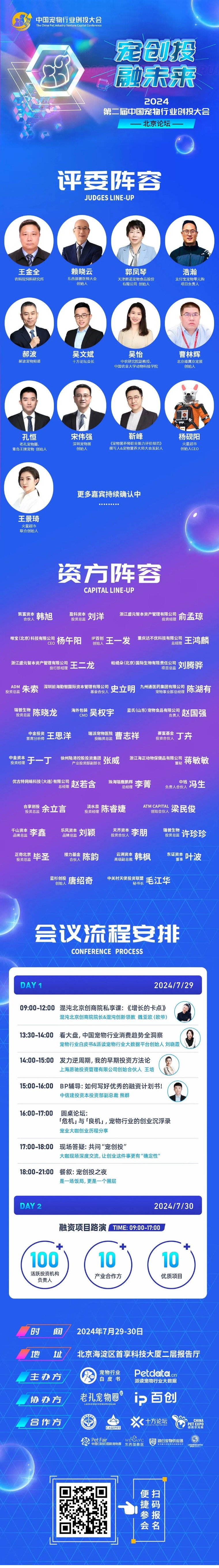 面对创业不确定性的环境和复杂的市场变化,单一的个体往往很难独善其身。为助力企业穿越成长周期,7月29日~30日,由中国宠物行业创投大会组委会发起,宠物行业白皮书及派读宠物行业大数据平台主办,老孔宠物圈协办,中国兽医协会、雄鹰京宠展、深圳国际宠物展、东西部兽医平台、润合供应链、山东省宠物行业协会等支持的2024年第二届中国宠物行业创投大会——北京论坛升级归来,将于北京首享科技大厦正式举办。
