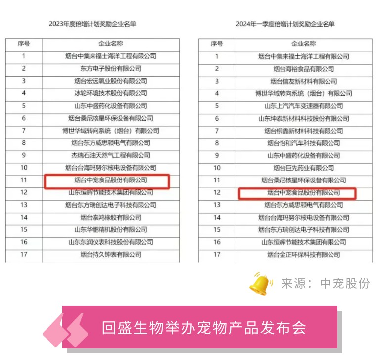 8月17日,中共烟台市委、烟台市人民政府召开全市先进制造业企业倍增发展推进大会,83家“倍增计划”培育企业接受现场表彰。其中,中宠股份也上榜获奖,共获得“倍增计划”奖励395.31万元。