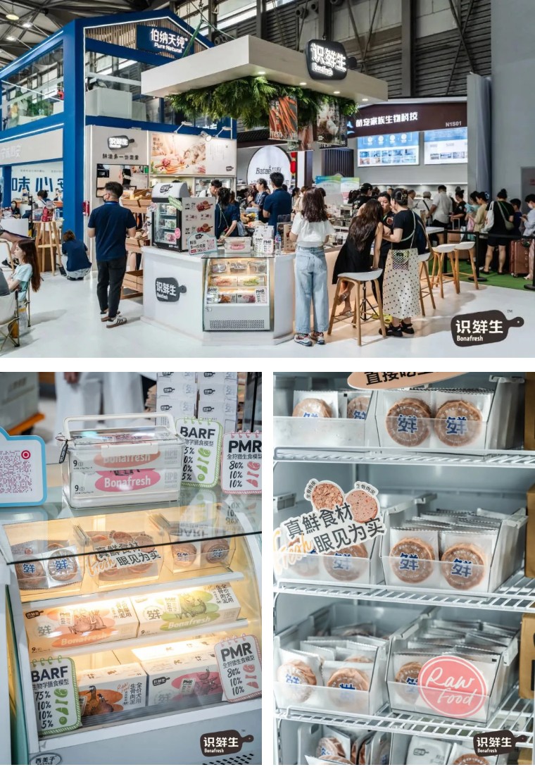 在8月21日-25日举行的第26届亚宠展上,识鲜生作为伯纳天纯旗下高端宠物鲜食品牌,首次正式亮相市场,并推出了主打全价猫用和全价犬用的8款生骨肉系列冷鲜粮产品。