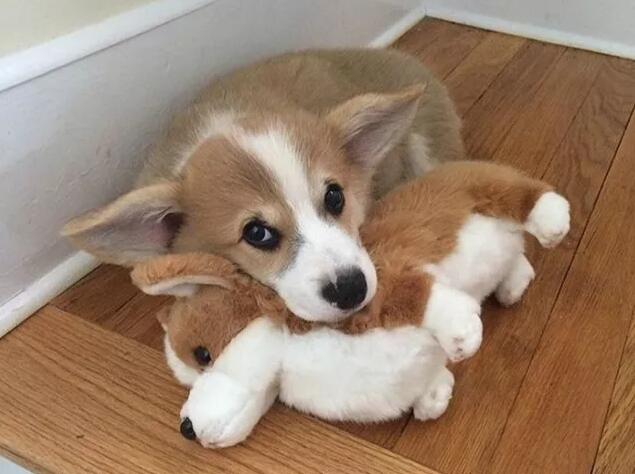 这个小柯基一直视自己的另一半,它自从看到这只玩具后,再也没正眼看过其他狗子了。