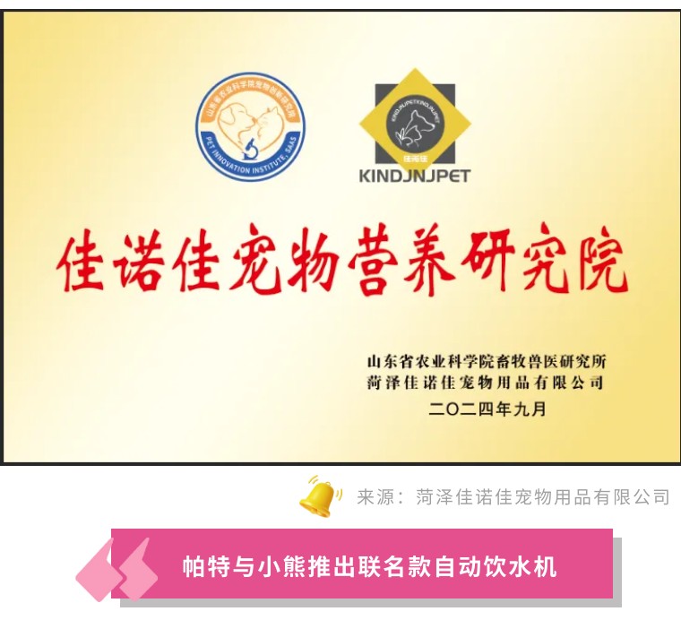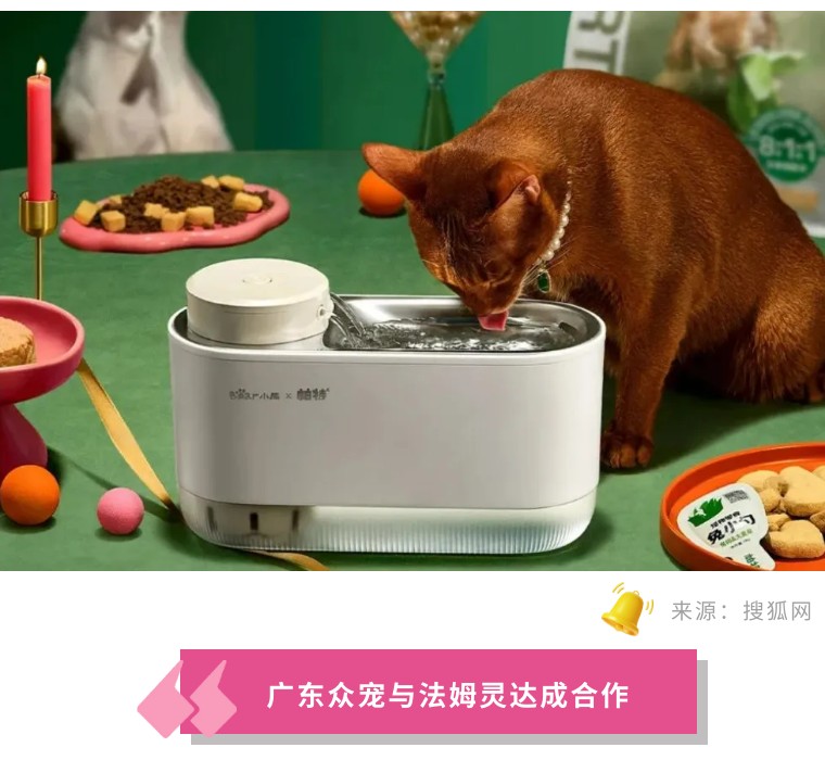 近日,宠物食品品牌帕特与小熊电器推出联名款宠物自动饮水机。