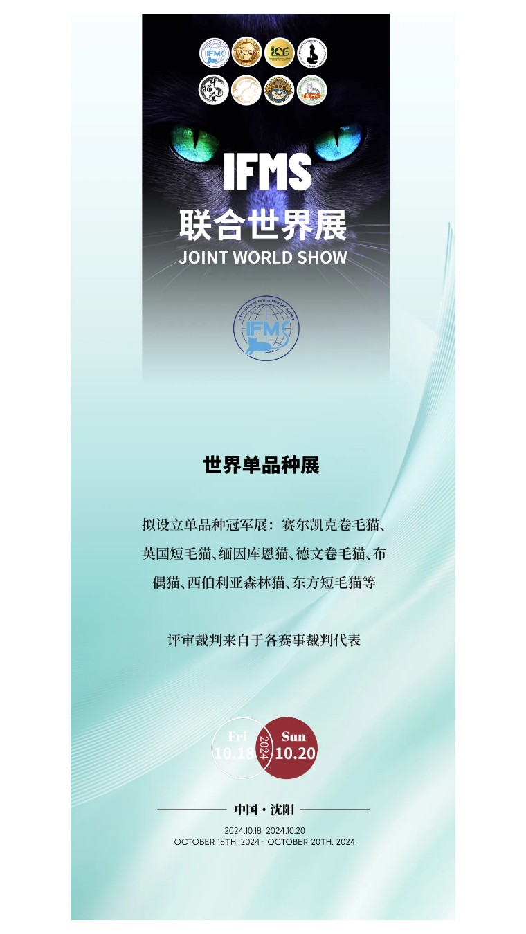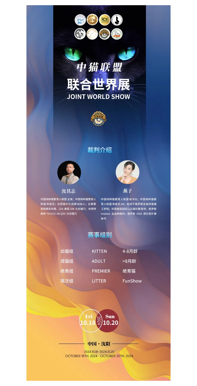 2024年10月18日至20日,沈阳,辽宁工业展览馆,我们将共同见证一场前所未有的“千猫大赛”,一场足以载入中国纯种猫史册的盛会!