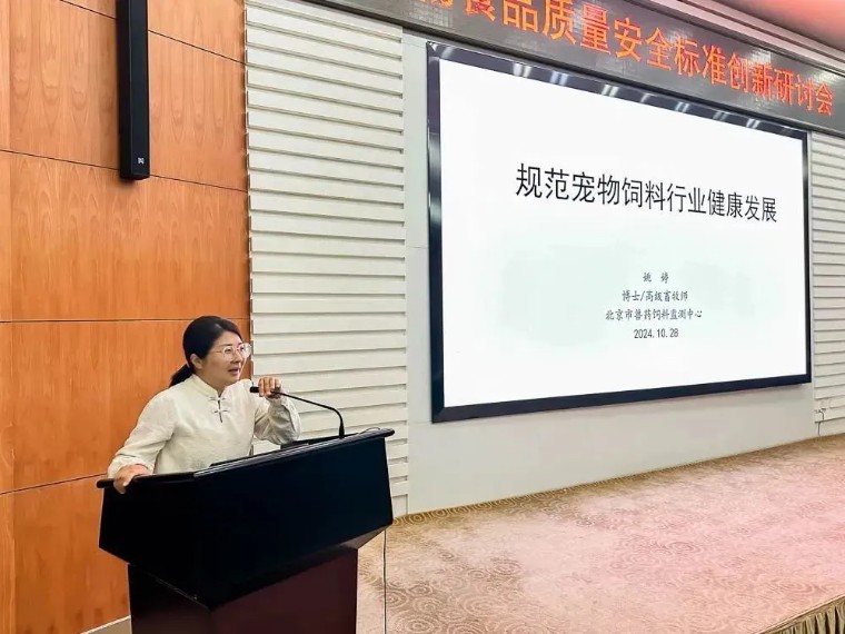 北京市兽药饲料监测中心博士/高级畜牧师姚婷博士以《规范宠物饲料行业健康发展》为主题,向与会嘉宾阐述了企业合规生产经营的关键要素、市售宠物饲料产品的突出问题和规范行业健康发展的主要工作等内容;并对规范行业健康发展建言献策。
