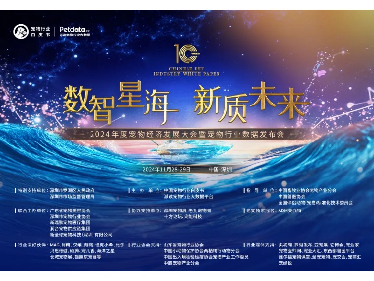 如今,中国宠物市场正由高速扩展期进入高质量发展期的关键阶段规,这一发展趋势的背后,又究竟隐藏着哪些深层次的消费驱动力和市场机会点呢?为了深入洞察中国宠物业未来十年的发展脉络,由中国畜牧业协会宠物产业分会、中国兽医协会、全国伴侣动物(宠物)标准化技术委员会指导,中国宠物行业白皮书、派读宠物行业大数据平台主办,广东省宠物美容协会、深圳市宠物行业协会、新瑞鹏宠物医疗集团、润合宠物供应链集团、新全球宠物科技(深圳)有限公司联合主办,深圳宠物展、老孔宠物圈、十方论坛、宠能科技联合协办,深圳市罗湖区人民政府、深圳市市场监督管理局特别支持的2024年度宠物经济发展大会暨宠物行业数据发布会正式定档,将于11月28~29日在深圳市罗湖区君悦酒店举办。
