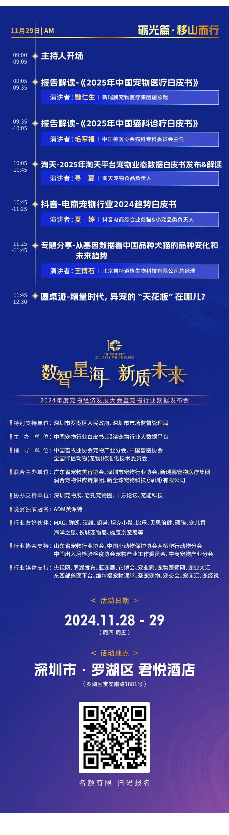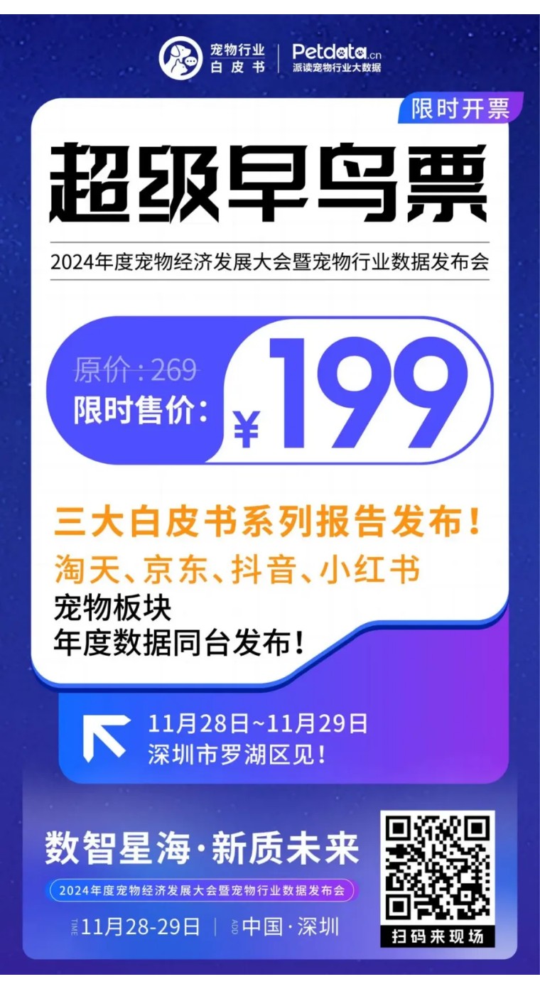 同时,淘天、抖音则将发布各自宠物板块的年度数据报告,为从业者带来淘天、抖音两大平台的最新的数据洞察。