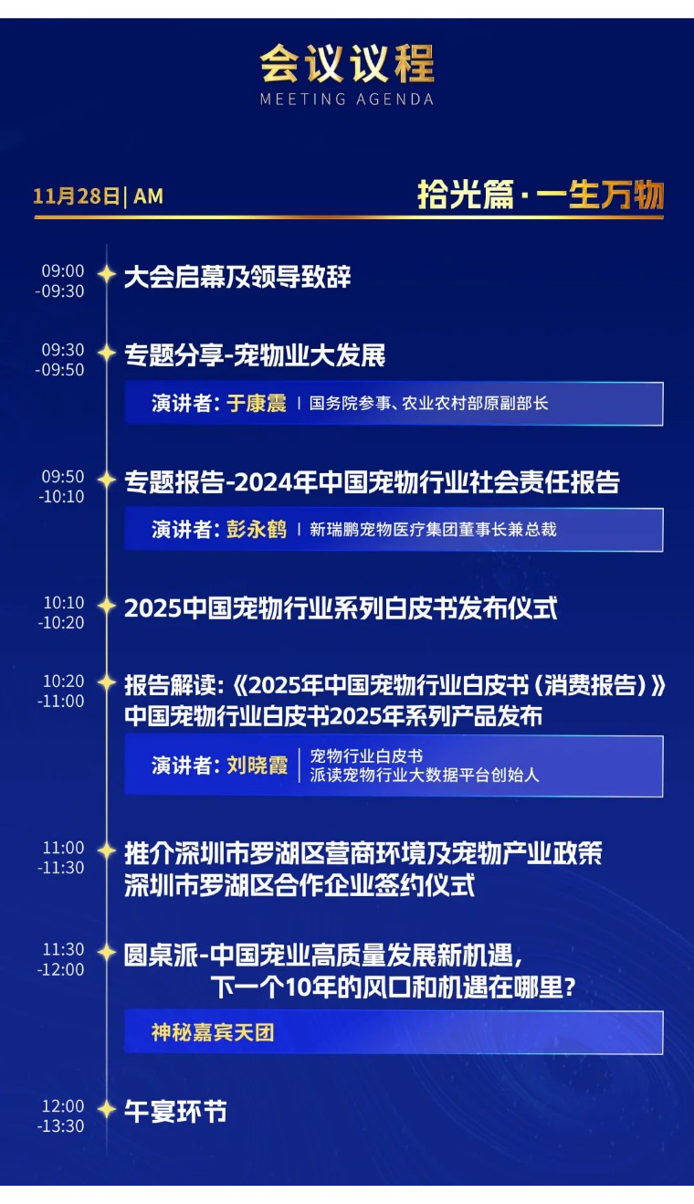 大会首日上午,代表宠物行业最新消费趋势的《2025年中国宠物行业白皮书(消费报告)》将正式发布,部分重点数据也将在大会现场同步公开解读,为你打开行业最新的“消费密码”。