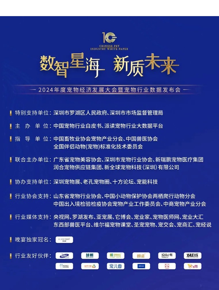 2024年,恰逢《中国宠物行业白皮书》发布十周年,白皮书团队将一如既往地用多维客观数据深度解析中国宠物行业的消费趋势、市场热点和未来发展动向,为业内人士提供必要的数据参考信息以及行业发展的判断和思考,为行业的下一个十年提供更多的确定性。2024年11月28日,诚邀各位宠物行业从业者与我们相聚深圳罗湖,一起共同探讨宠物行业的未来发展,共同交流心得,碰撞思路。