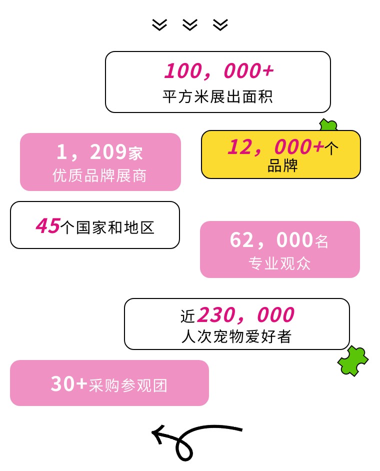 作为中国宠物行业风向标,京宠展始终致力于高效精准连接供需两端,为参展商与采购商搭建起一座日久弥新的稳固桥梁。为了提高展商及买家满意度,不断深化展会平台贸易属性,主办方汇聚千余家经销商、代理商及电商,组织30多个专业买家团,为展商提供高效商贸对接。