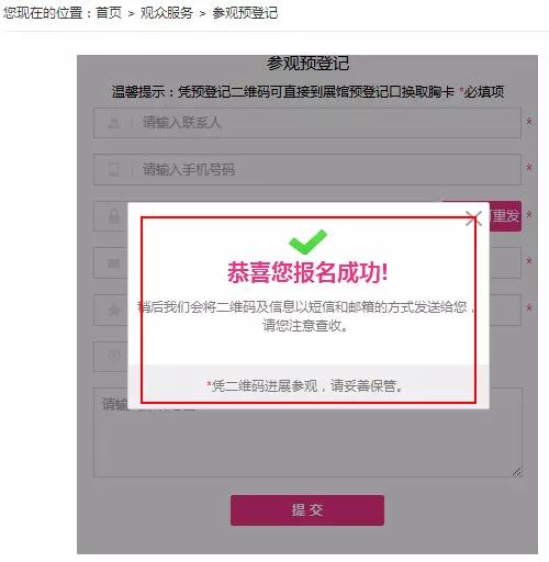 填写完整报名信息后即可提交预登记了: