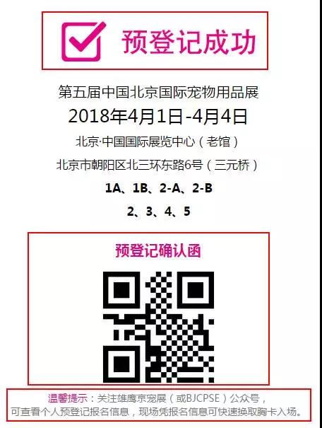 注:欢迎您预约参观京宠展,在线预登记,提前获得参观证免费入场,更有机会抽取大奖!