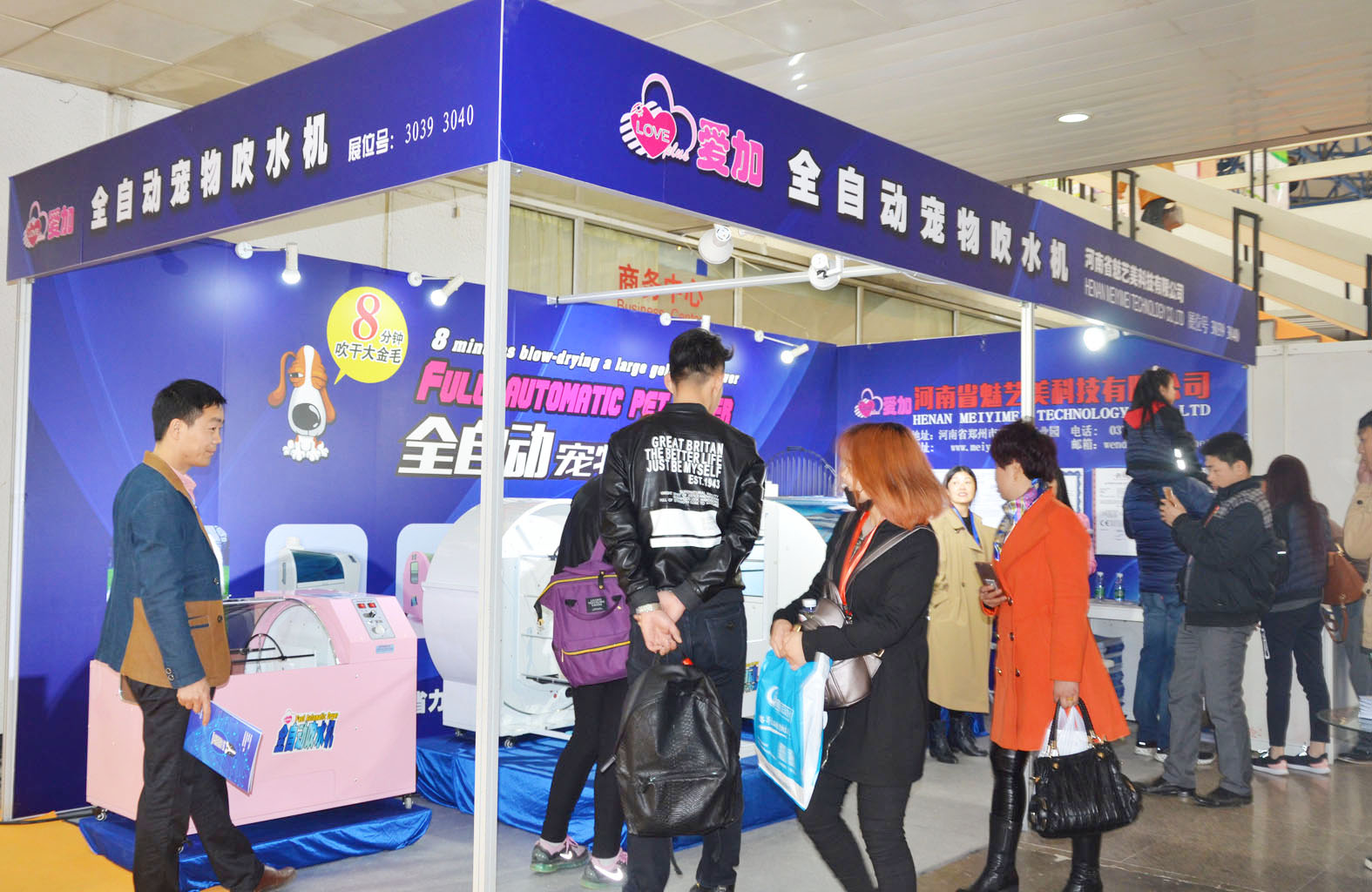 爱加宠物用品公司为大家还带来了爱加全自动宠物吹水机,节省人工,提高工作效率,3个吹风头同时工作吹风,360度围绕宠物旋转,全方位无死角直吹,超强风力,直达毛发根部,风速无级调速,风温三档可调(高温/中温/关闭),智能温控,负离子风,紫外线杀菌,宠物的好帮手。展会期间,爱加已经惊人的销售额收官,该产品得到了大家的关注和青睐!