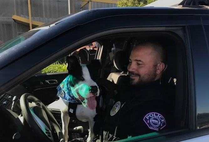 警局的警察可以选择收容所的任何一只狗狗带在身边一起工作,增加它的曝光量,让更多的人看到它们,这样就增加了它们被收养的机会,同时也让它们远离收容所压抑的环境。
