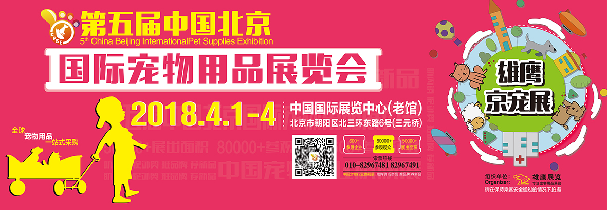 第五届雄鹰·京宠展于4月1-4日将在中国国际展览中心(老馆)届时举行,将更加注重推广,合作媒体有:世纪宠物、爱宠医生、驰锐传媒、宠爱国际、宠酷网、宠物商机网、宠物世界、宠物用品招商网、狗民网、环球宠物网、快乐宠物频道、乐嘟宠物圈、猫狗诊所、圣宠宠物、时代宠物、它它邦、一度宠物、中国动物保健,京东,宠业家等。
