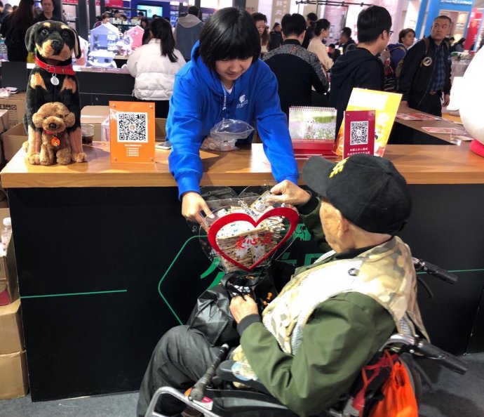 展会期间,有位老爷子给小编留下十分深刻的印象。他的女儿和他一起来的,虽然年纪大了,听力不是很好,眼神儿也不行了,但是到了我们的展位前面,还要亲手为流浪动物捐粮,我跟老爷子说这一张小卡片可以为流浪动物捐粮用于救助他们,平时听不清的老爷子这时听得很清楚还回应了我呢!一个劲儿的嗯嗯嗯。