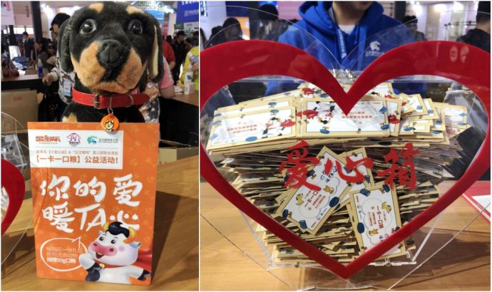 此次与小金公益,金多乐共同推出的【一卡一口粮】公益活动在为期四天的展会上,共筹集1105张口粮卡,感谢为流浪动物捐粮的每一位朋友,感谢得知有了卡片才能捐粮而特意买金多乐大礼包的朋友,你们的爱心捐助汪汪喵呜都记在心里,感谢你们为流浪动物贡献的每一份力量!