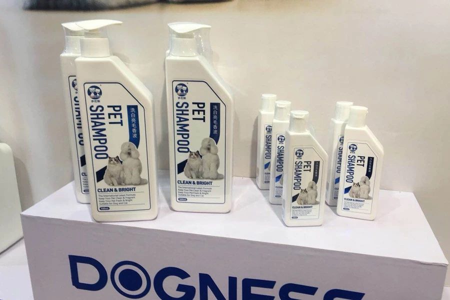 多尼斯带来两款高端美发沙龙宠物香波,一款是蓬松柔顺型,另一款是洗白亮毛型。