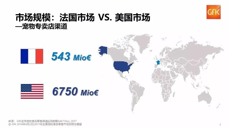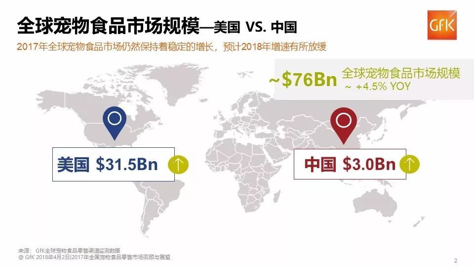 据GfK零售监测数据显示, 2017年中国宠物食品市场规模约为30亿美元。2016年美国宠物食品市场规模是中国的近20倍,而去年这个倍数已缩小至10,由此可见,中国宠物食品市场增长迅猛,发展前景十分可观。