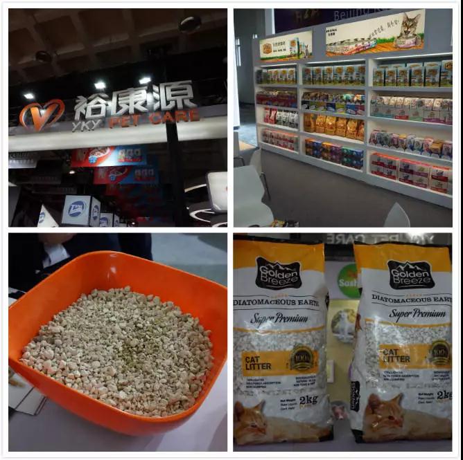 这是入场的第一家展柜,想和大家主要介绍的就是这家的猫砂,平时比较常见的猫砂品种是:水晶猫砂、膨土猫砂、豆腐渣猫砂、蓝钻猫砂,而图中的猫砂是第一次见到。猫猫的小便会被猫砂净化,不会结团、留下气味,还有速干的功效,可以重复使用20多次。猫猫的便便和普通猫砂一样,需要猫砂的包裹,净化气味的功能比较显著。因为是新产品的原因,只有两袋展品,并没有开始售卖,这个新品种猫砂不仅提升了使用率,也方便了铲屎官。