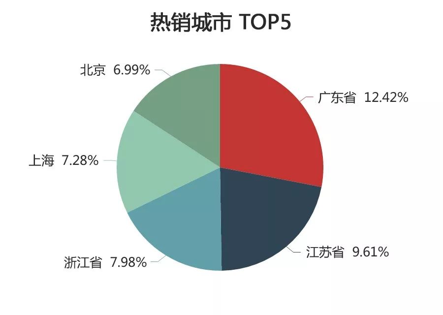 从保健品的热销地域看,广东省排名热销城市榜单首位,占比12.42,平均客单价为85.58元;江苏省排名第二,平均客单价为89.08元;浙江省平均客单价为87.99元;上海平均客单价为108.41元;排名第五的北京平均客单价最高,达114.72元。