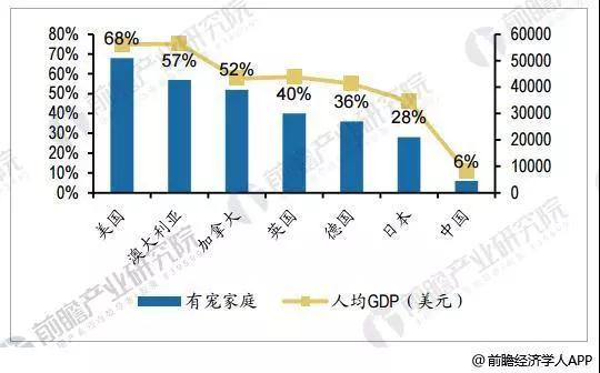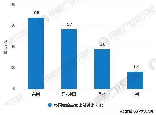 宠物数量具有很大的提升空间,量变阶段远未结束。根据前瞻产业研究院数据,2017年我国家庭养宠比例约为17%,与主要发达国家相比存在着明显差距。美国家庭养宠比例高达68%,澳大利亚有57%,日本约为38%。我国现有宠物猫狗总数8746万只,与美国有一亿只的差距,考虑到我国的人口基数,则户/人均拥有宠物数量的差距更加明显。