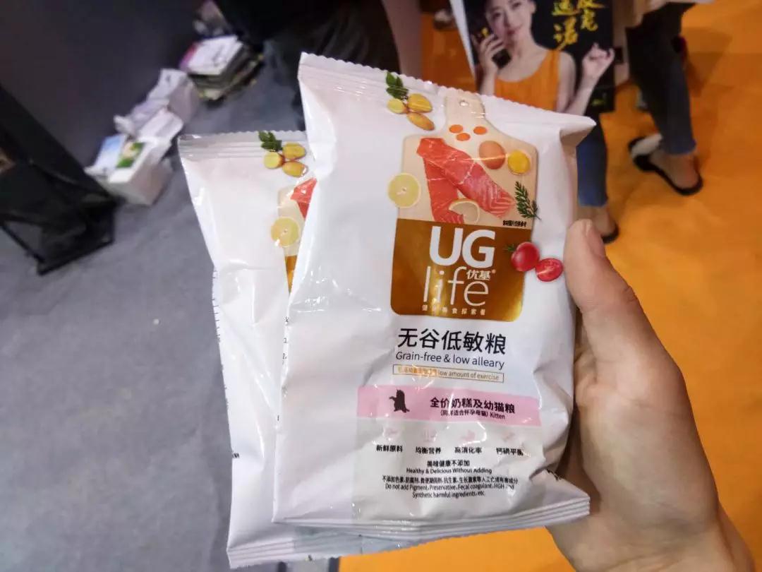 换个展位,我们跑到A馆上海优基(A8),扫码进入优基京宠展现场群可以领到两袋猫粮。