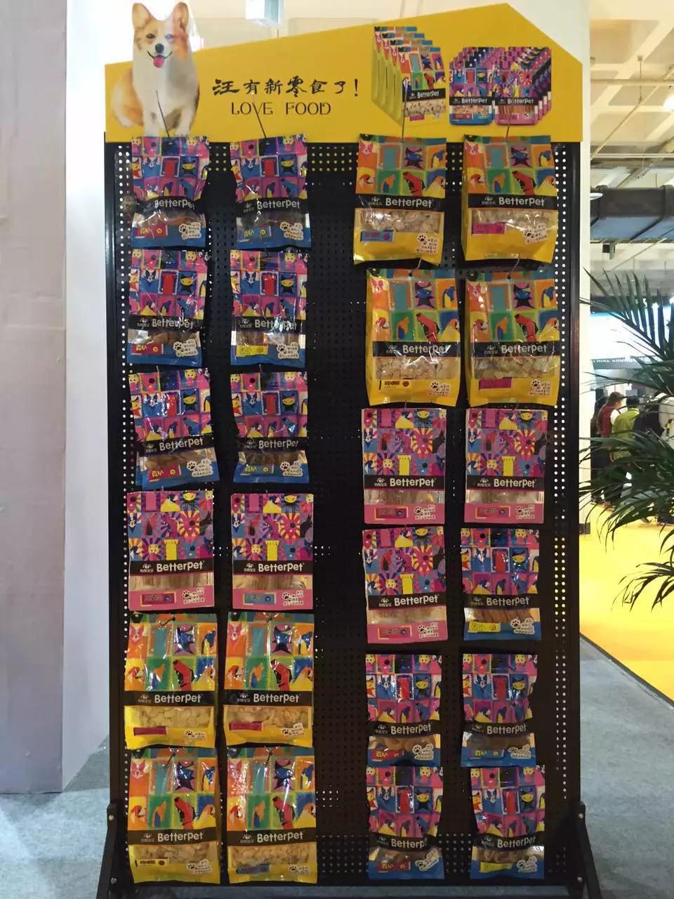 本次展会,我们共展出新品五大系列斑斓酥(犬用)、真扒(犬用)、三文治(犬用)、真食(猫用)、珍宝听(猫用),共20个单品,采用全新包装设计,新工艺制作产品,获得现场观众的青睐。