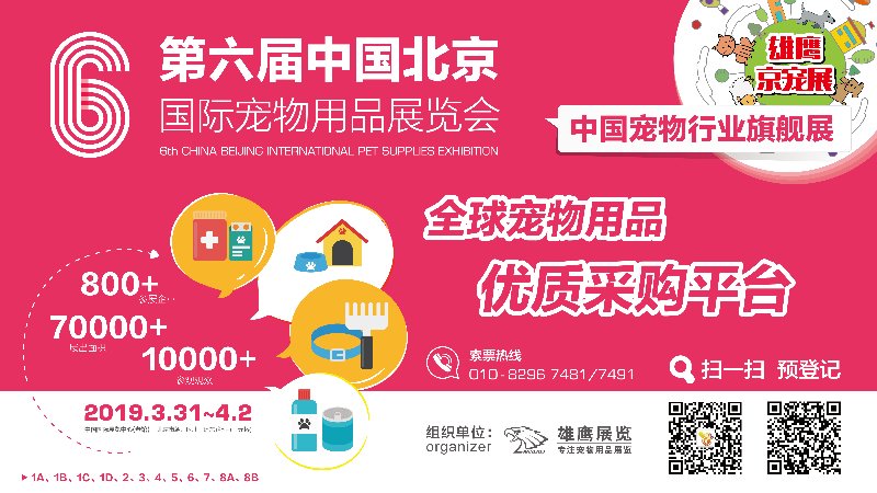 第六届中国北京国际宠物用品展览会(雄鹰·京宠展)将于2019年3月14日~17日在中国国际展览中心(老馆)(1A、1B、1C、1D、2、3、4、5、6、7、8A、8B)举办!
