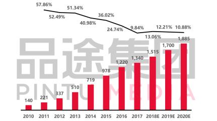 据《2017年中国宠物行业白皮书》调研显示,中国宠物市场规模预计2018年将达到1,515亿元人民币,增速达13.06%,而同期美国宠物市场规模达到695.1亿美元,约为中国市场规模的3.5倍。