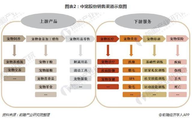 庞大的宠物消费市场也加快了宠物产业的细分步伐,使产业链逐步得到丰富和完善。目前,宠物行业总体可以分为上游宠物产品产业和下游宠物服务产业两大部分。