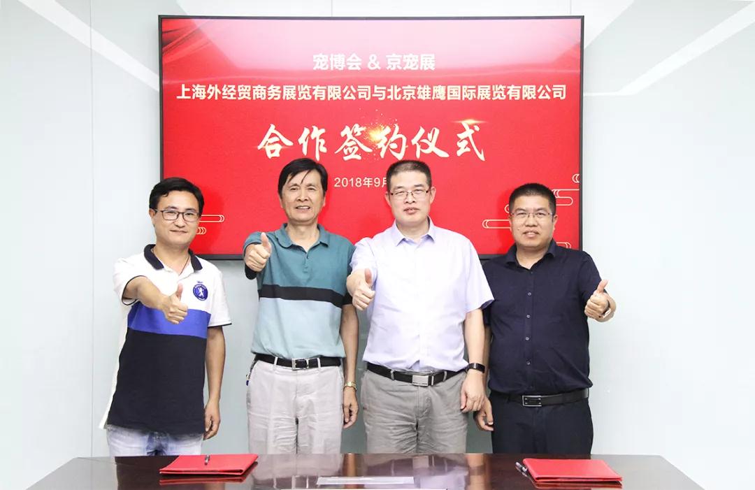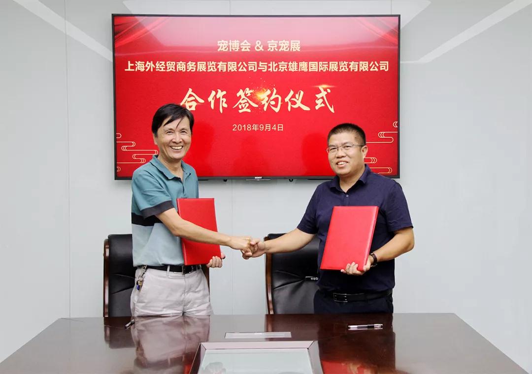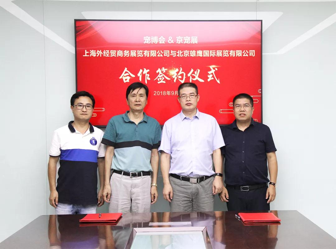 2018年9月4日,北京雄鹰国际展览有限公司(雄鹰京宠展)与上海外经贸商务展览有限公司(上海宠博会)于昨日在北京举行了合作签约仪式!